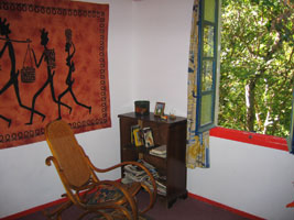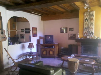 Inside the property The house is very comfortable and pleasantly furnished. The terrace leads to a big downstairs living area with dining room table to one side and a cosy sitting area with TV/video, stereo, books, and a fireplace to the other side. Open plan access leads to the fully equipped kitchen with washing machine, dryer, fridge freezer and microwave. There is a downstairs toilet and an upstairs shower room/toilet. There is one downstairs bedroom/living room and two upstairs bedrooms (one with double and one with single beds) with superb views over the hills. Bed linen and towels are included.